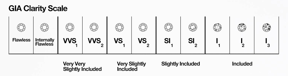Clarity refers to the number and degree of inclusions that are naturally part of a diamond’s growth and formation. Inclusions can appear as crystals, feathers, bubbles, or dark spots. Flawless diamonds with no inclusions are exceptionally rare and valuable. The clarity ranking is determined by the ease or difficulty of which a trained gemologist can see inclusions under 10x magnification.